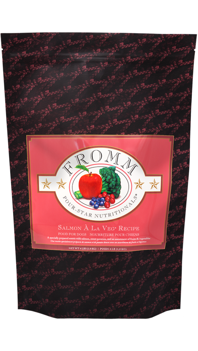 Fromm Four-Star Nutritional's Salmon À La Veg Recipe Food for Dogs is formulated to meet the nutritional levels established by the AAFCO Dog Food Nutrient Profiles for all life stages, including growth of large size dogs (70 lbs or more as an adult).
